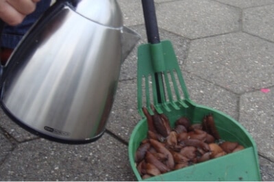 5. Sneglene dør øjeblikkeligt af det kogende vand og efterlader en ”grødet” masse.