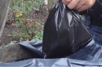 skraldespanden i en lukket pose.